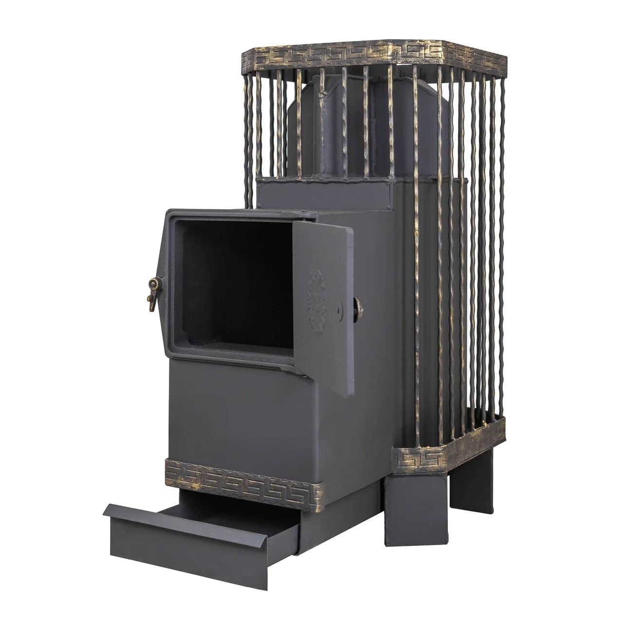 Печь АМУР КОВКА с выносным каналом оснащена дополнительной камерой из 4-х секций, благодаря которой происходит очень быстрая передача тепла от дымовых газов к камням. Большая площадь соприкосновения камеры-крестовины с камнями позволяет приготовить баню за короткий срок и обеспечить максимальную температуру каменки.