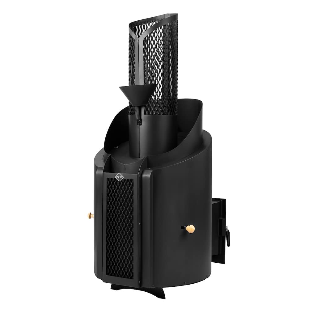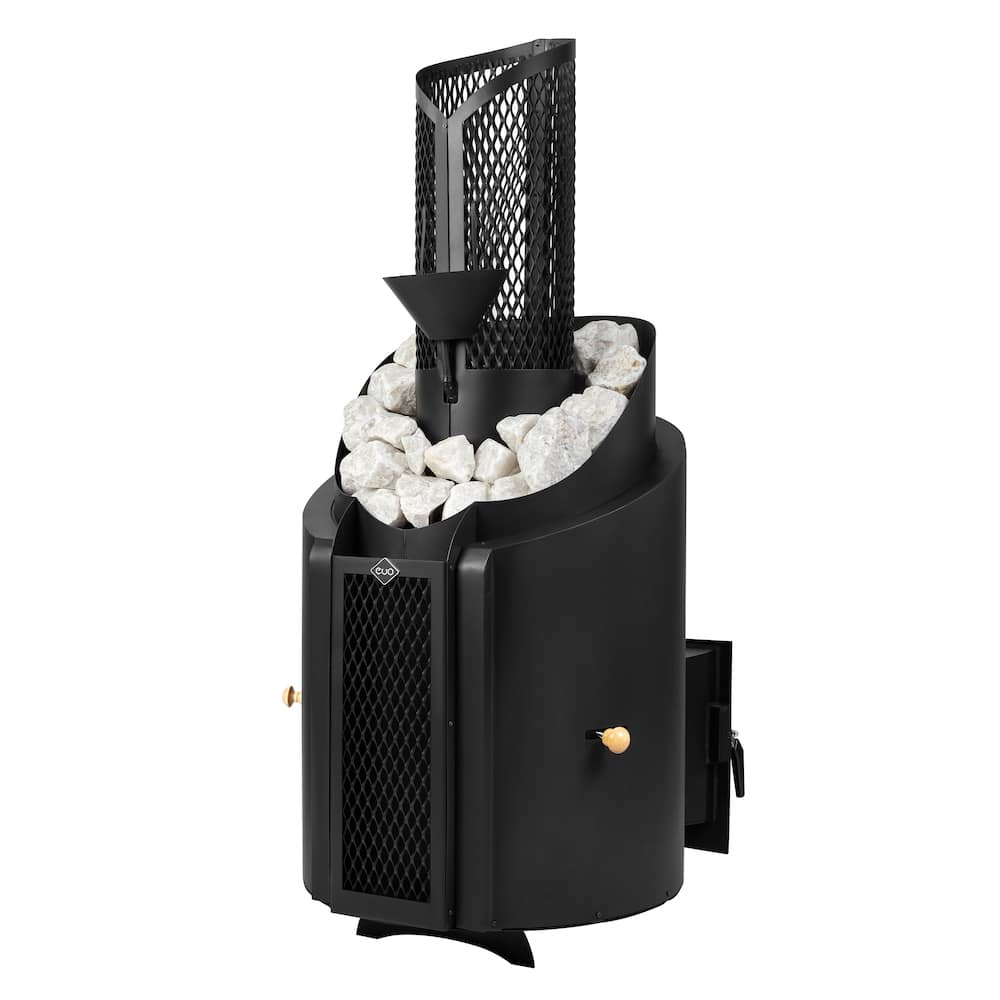 - Внешний корпус остужается воздухом между контурами металла и не нагревается до опасных температур, в умеренном режиме температура внешнего контура около 70-80 градусов. Верхние камни являются декором и украшением, а не рабочими камнями. Тем не менее, не оставляйте детей без присмотра в процессе работы печи!