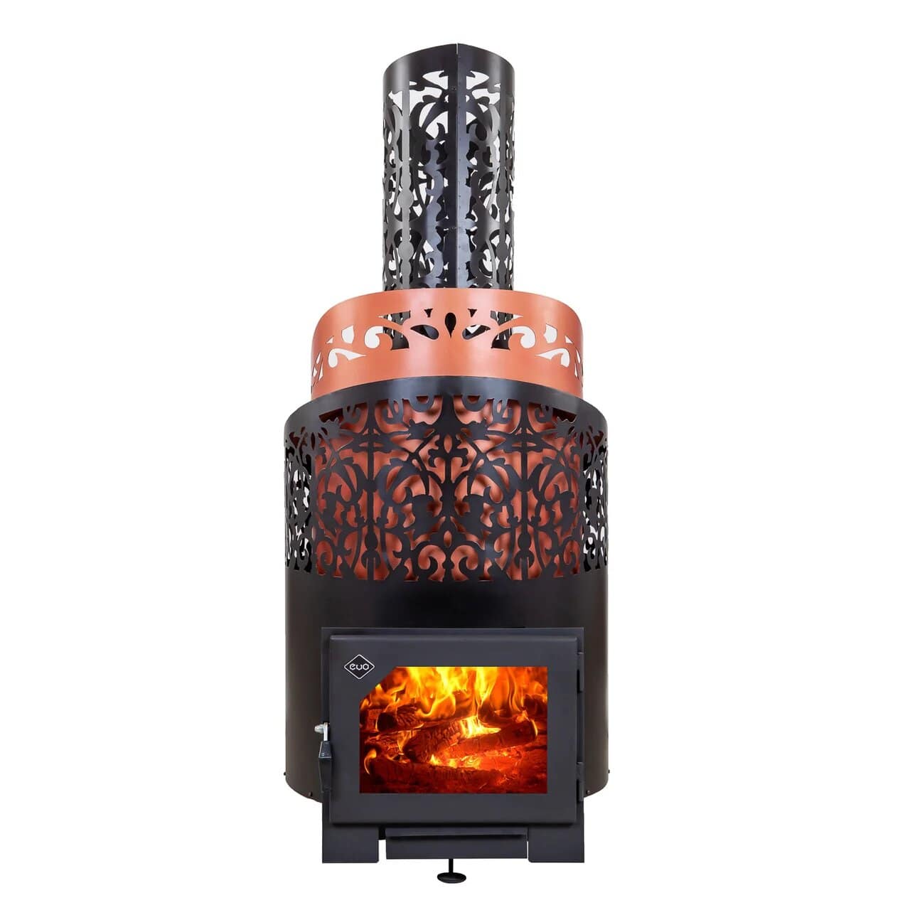 - Внешний корпус остужается воздухом между контурами металла и не нагревается до опасных температур, в умеренном режиме температура внешнего контура около 70-80 градусов. Верхние камни являются декором и украшением, а не рабочими камнями. Тем не менее, не оставляйте детей без присмотра в процессе работы печи!