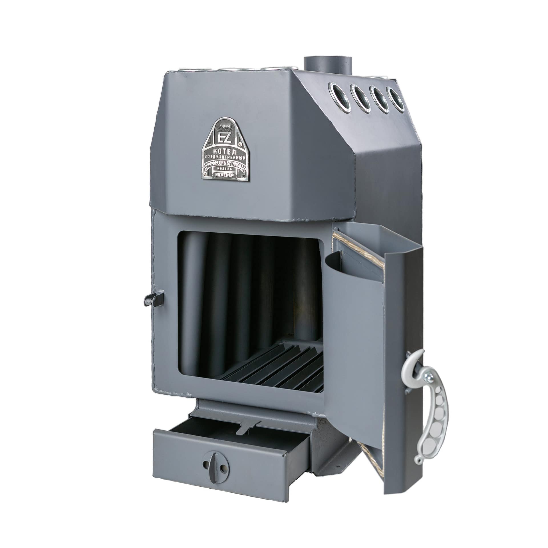 Дверь топочной камеры, вращающаяся на шарнирах, открывается на 120° и имеет полость с установленным в ней уплотнителем. Механизм запирания надежно фиксирует дверцу в закрытом положении поворотом ручки.