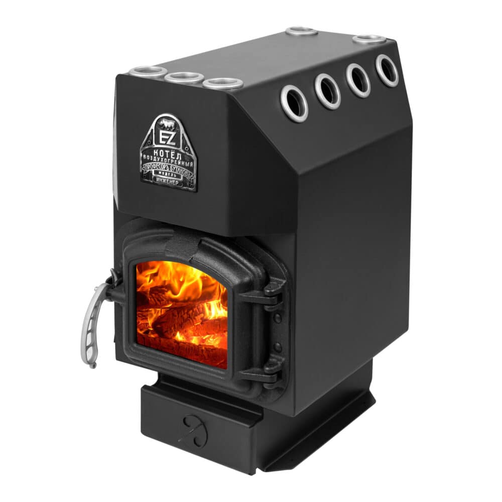 Воздухогрейный котёл ПРОФЕССОР БУТАКОВ «ИНЖЕНЕР» на дровах, дверь со стеклом