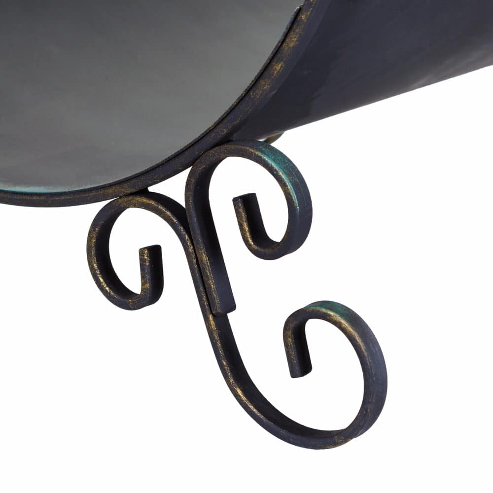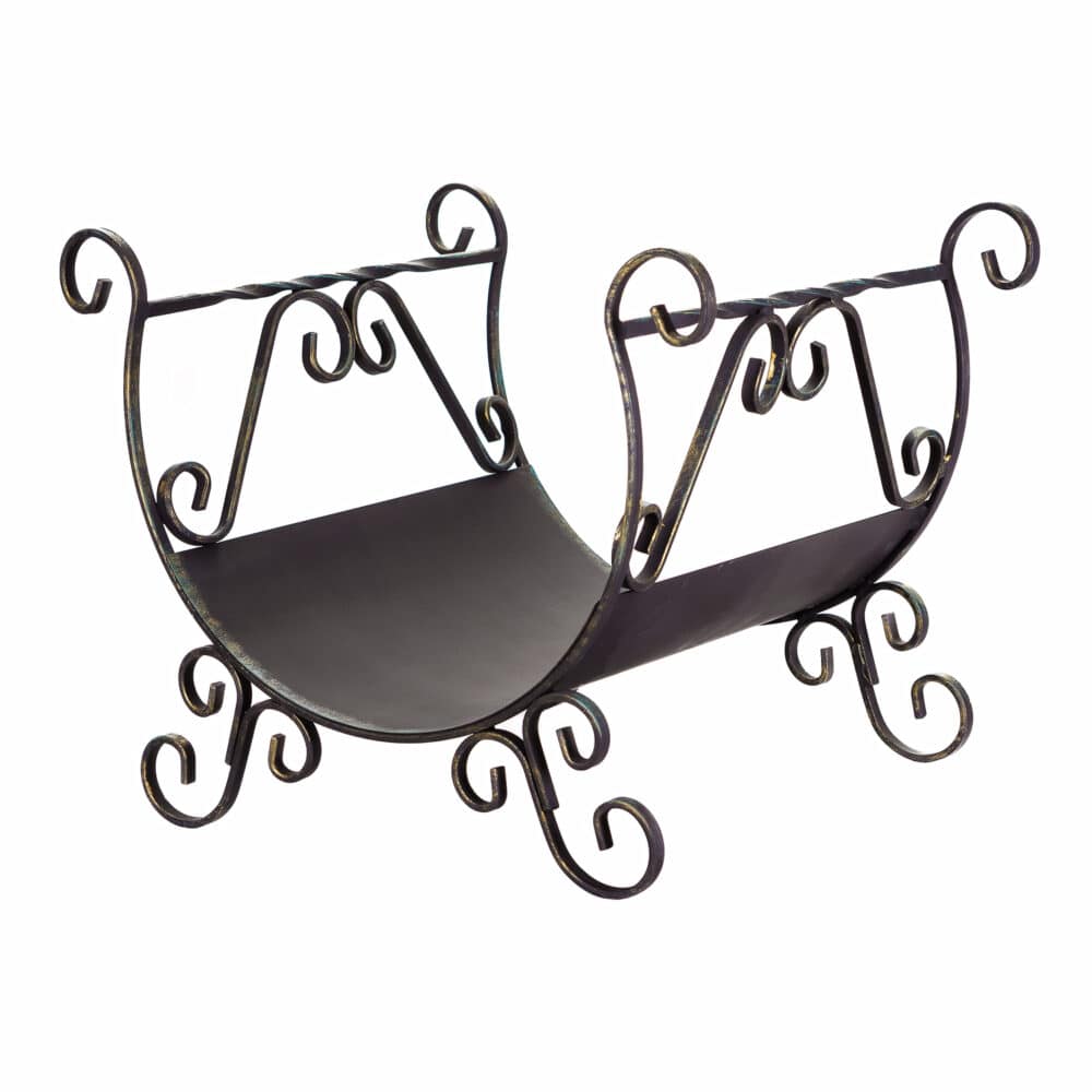 Дровница – это полезный аксессуар для хранения дров рядом с печкой или камином. Благодаря ей, не нужно ходить на улицу каждый раз, когда требуется подкинуть полешки в огонь. Она помогает сохранить порядок, удерживая древесный мусор. Украшена патинированием.