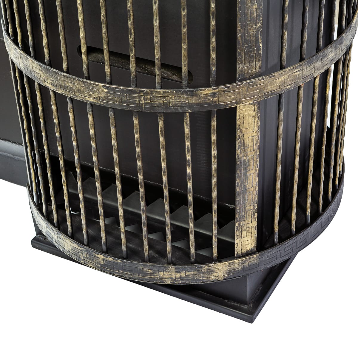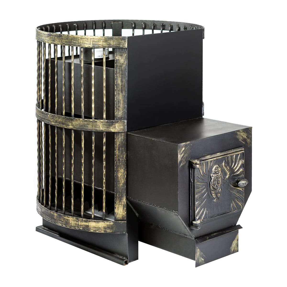 Печь для бани КОВКА 15м³ обладает вместительной кованой сеткой в античном стиле и практична в эксплуатации. Высокая скорость нагрева камней и парильного помещения обеспечивается специальной конструкцией доработанного теплообменника: увеличенная каменка нагревает камни с 5 плоскостей.