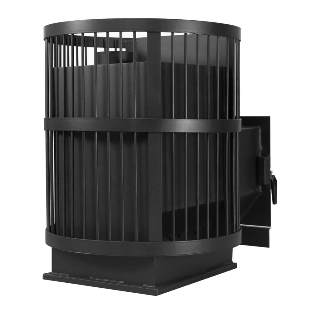 Печь для бани СТАНДАРТ 24м³ обладает вместительной классической сеткой и практична в эксплуатации. Высокая скорость нагрева камней и парильного помещения обеспечивается специальной конструкцией доработанного теплообменника: увеличенная каменка нагревает камни с 5 плоскостей.